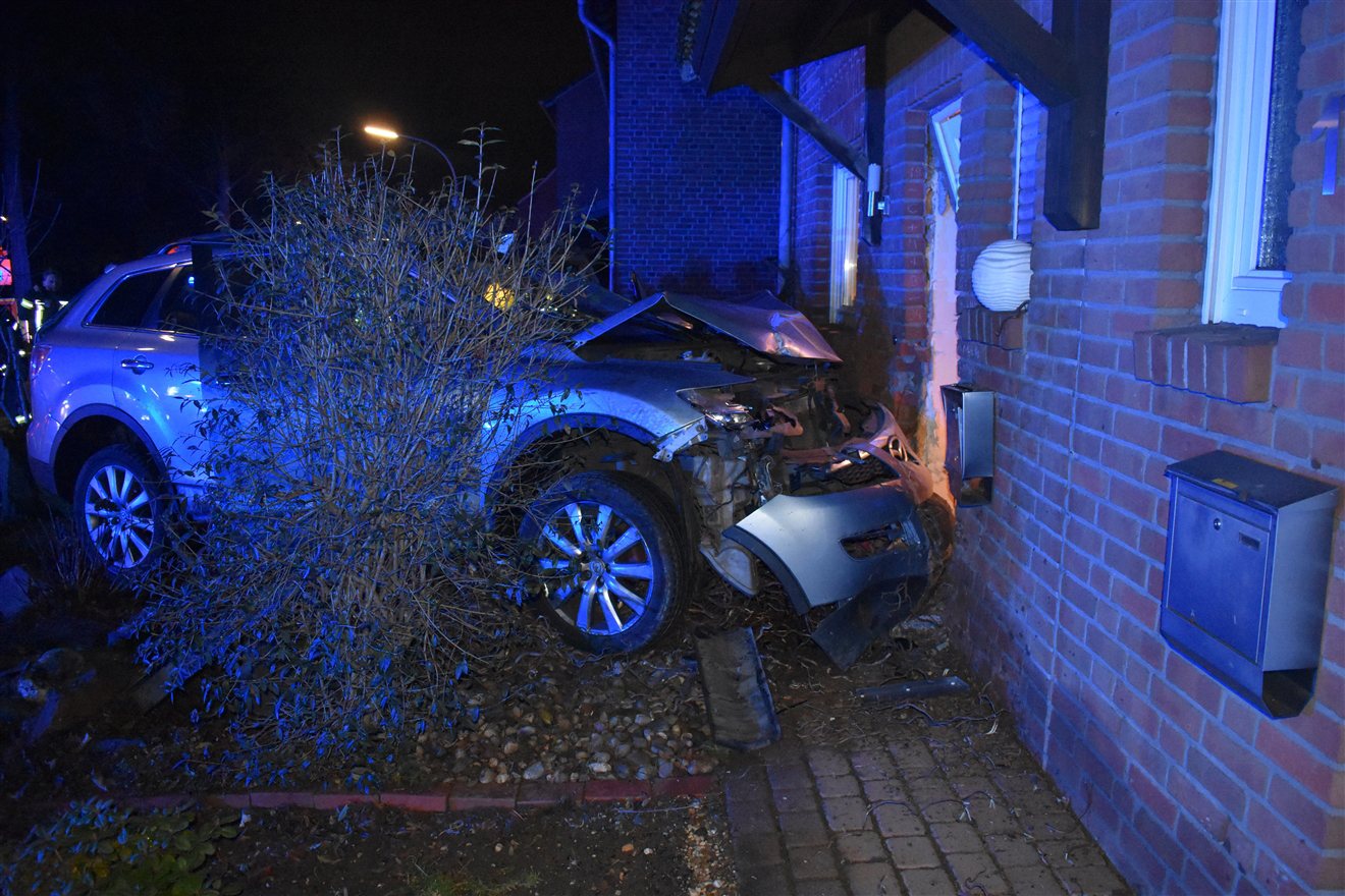 In der Nacht zu Freitag, 6. Januar, hat ein 39-jähriger Autofahrer einen Verkehrsunfall verursacht, bei dem er die Außenwand eines Wohnhauses und das Fahrzeug beschädigte.