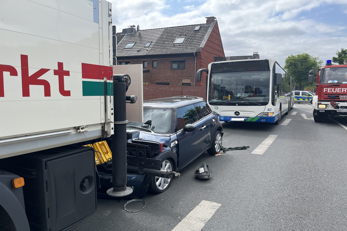 Moers - Auffahrunfall zwischen einem LKW, PKW und einem Linienbus