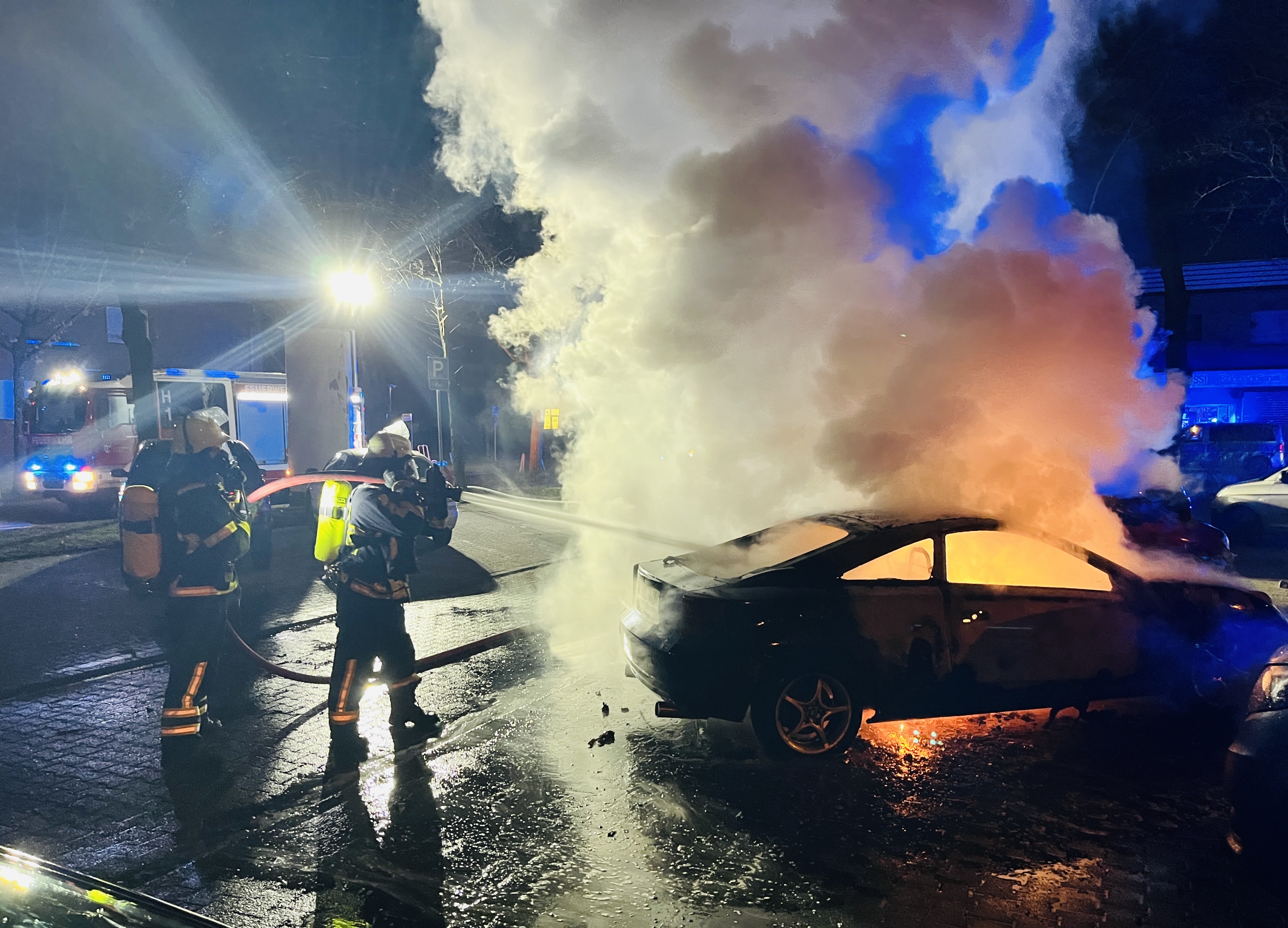 Bei Eintreffen der Einsatzkräfte befanden sich zwei abgestellte Fahrzeuge im Vollbrand, das Feuer drohte auf weitere geparkte PKW überzugreifen. Ausgerüstet mit Atemschutz, bekämpfte ein Trupp das Feuer und schützte angrenzende Fahrzeuge vor weiterer Brandausbreitung. Für die Nachlöscharbeiten wurde auch Schaum eingesetzt.