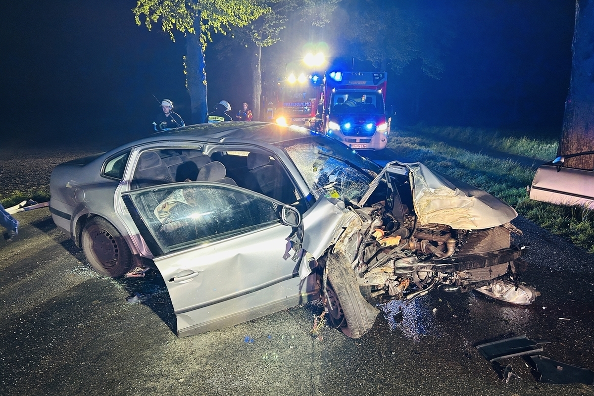 Die Beifahrerin war schwerverletzt im Fahrzeug eingeschlossen und musste mit Rettungsgerät durch die Feuerwehr befreit werden. Zur Versorgung und Befreiung des ebenfalls schwerverletzten Fahrers wurde eine Tür entfernt.