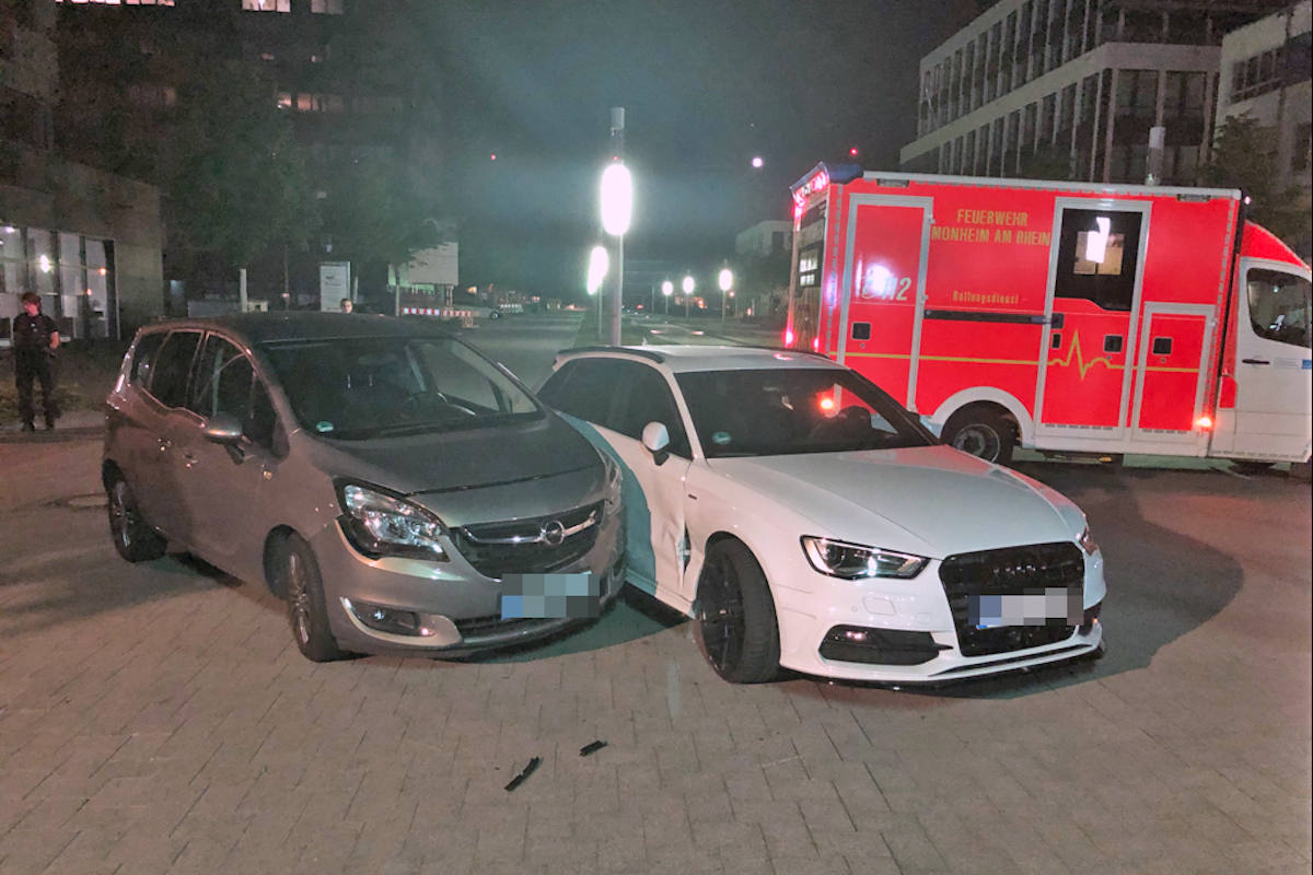 Gegen 22:30 Uhr war der Langenfelder in seinem Audi A3 nach dem derzeitigen Stand der Erkenntnisse mit überhöhter Geschwindigkeit über die Rheinpromenade in Monheim am Rhein gefahren. Hierbei missachtete er auf Höhe des "Monbergs" den Opel Meriva einer 18-jährigen Monheimerin, die dort gerade vorfahrtberechtigt abbiegen wollte.