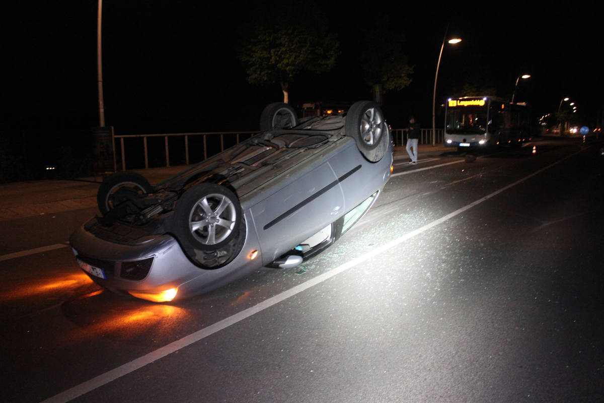 Zur genannten Zeit befuhr ein 18-jähriger Monheimer mit seinem PKW Seat Ibiza die Rheinpromenade in Fahrtrichtung Süden. Im Fahrzeug befanden sich zwei weitere Insassen. Ein 16 - jähriger Freund aus Düsseldorf, sowie ein 18- jähriger Freund aus Monheim. Nach Angaben der Unfallbeteiligten und Zeugen kam der Seat in Höhe einer Bushaltestelle von der Fahrbahn ab und überschlug sich. Das Fahrzeug blieb auf dem Dach liegen. Alle Fahrzeuginsassen konnten sich selbständig befreien und blieben glücklicherweise nur leicht verletzt.