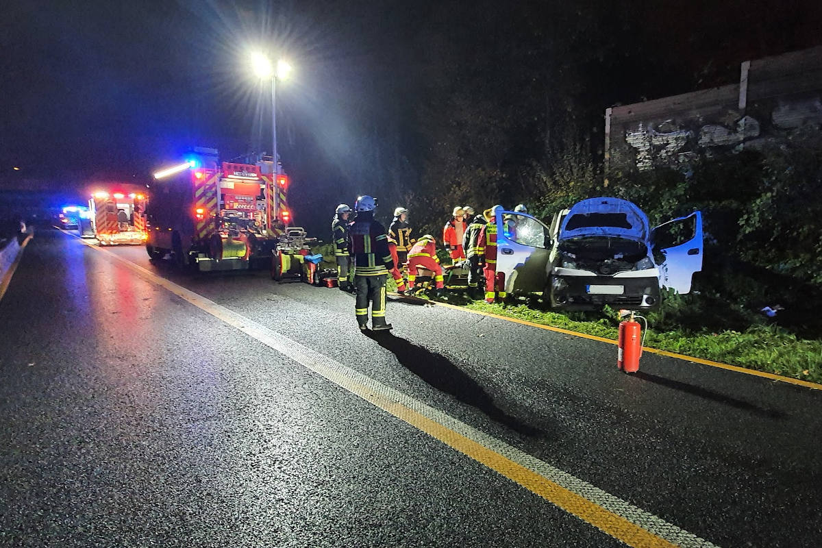 Dieser war im Baustellenbereich, kurz hinter der Ausfahrt Styrum aus unbekannten Gründen von der Fahrbahn abgekommen und mit Teilen der Böschung kollidiert. Der Fahrer verletzte sich dabei, wurde aber nicht eingeklemmt. Nach rettungsdienstlicher Erstversorgung in seinem Fahrzeug wurde der Patient schonend gerettet und im weiteren Verlauf dem Uniklinikum Essen zugeführt.