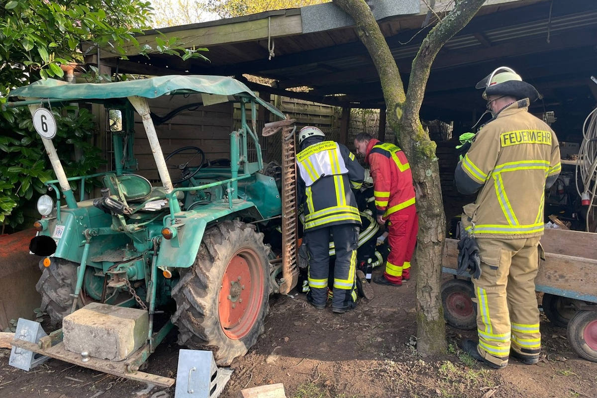 Am heutigen Montagnachmittag um 15:45h wurde eine eingeklemmte Person unter einem Traktor der Leitstelle der Feuerwehr Mülheim an der Ruhr gemeldet.