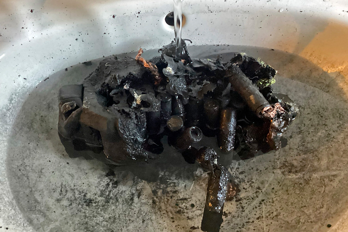 Geistesgegenwärtig legte er den brennenden Akku in die Badewanne, schloss die Badezimmertür und rief die Feuerwehr.