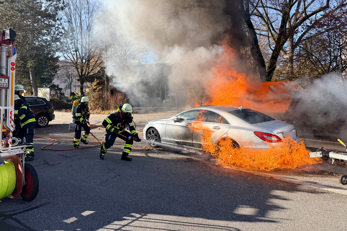 Die Flammen erfassten einen nahe stehenden Mercedes. (Bildquelle: Feuerwehr München)
