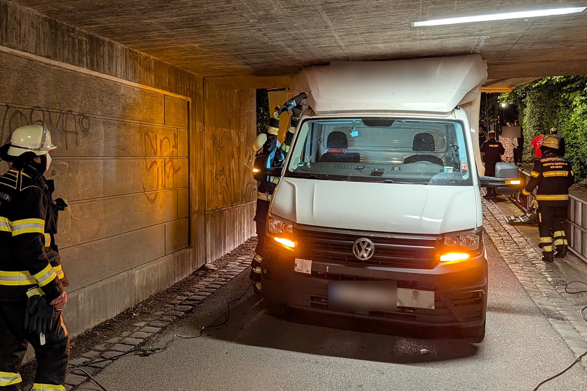 Am 03.09.2025, gegen 20:00 Uhr, blieb ein junger Mann mit einem Kleintransporter im Münchner Westen unter einer Bahnüberführung in der Allacher Straße stecken.