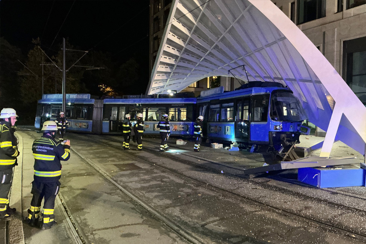 Die Straßenbahn prallte in Folge in die Haltestelle. (Bildquelle: Feuerwehr München)
