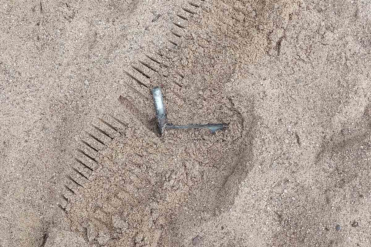 Am 25. Mai 2021 wurde dann der auf dem Foto abgebildete Metallgegenstand an der gleichen Stelle entdeckt.