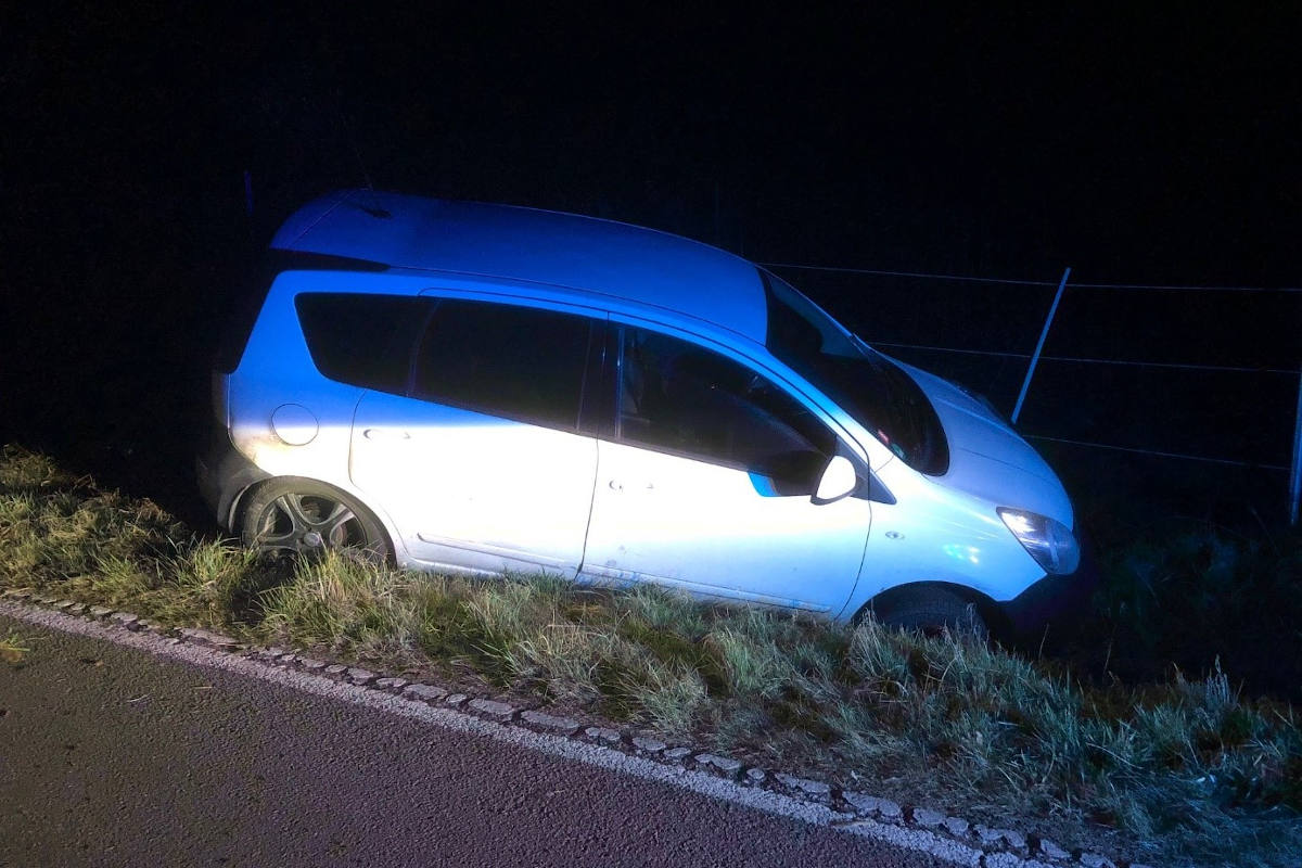 Auf Höhe der Kläranlage geriet die Fahrerin in einer Rechtskurve auf die Gegenfahrbahn und kam im Weiteren im dortigen Graben zum Stehen. Ein durchgeführter Atemalkoholtest ergab einen Wert von 2,39 Promille. Die 44-Jährige wurde leicht verletzt in ein Krankenhaus eingeliefert. Der Sachschaden wird auf ca. 2000EUR geschätzt. Ein Strafverfahren wurde eingeleitet und der Führerschein sichergestellt.