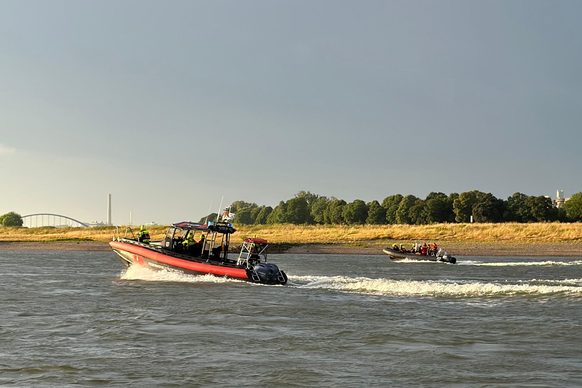 Die Rettungsboote der Feuerwehr Neuss sowie der beteiligten Wasserrettungsorganisationen fuhren unter Führung der Feuerwehr in Reihe die betroffenen Flussabschnitte ab und setzten die Suche trotz Gewitter und der Gefahr durch Blitzeinschläge auf dem Wasser fort.