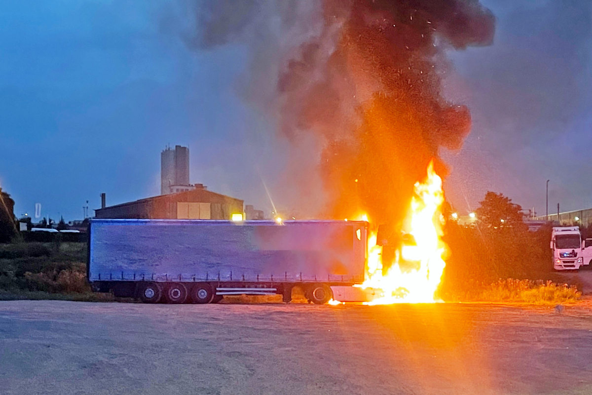 Die Polizei hat die Ermittlungen zur Brandursache aufgenommen, die Zugmaschine wurde vollständig zerstört. Verletzt wurde niemand.