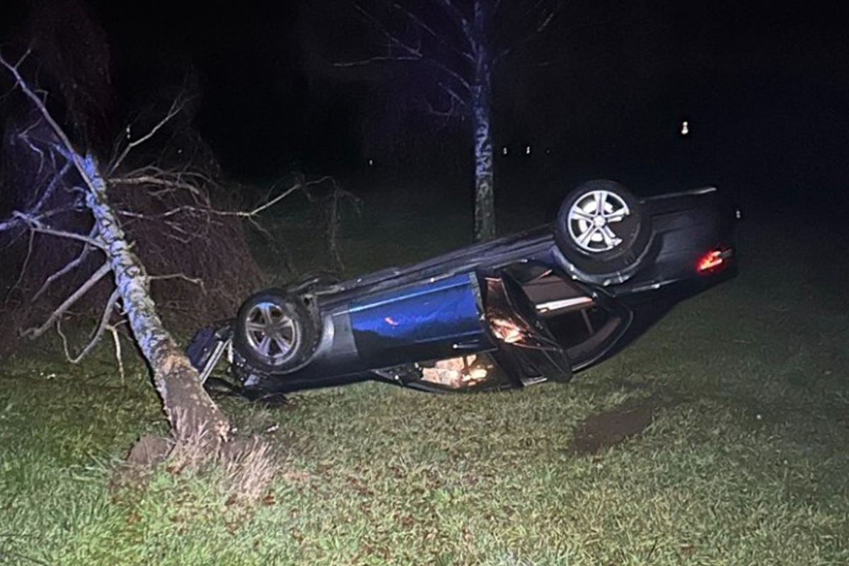 Am frühen Mittwoch, 26.11.2025, kam eine Mercedes-Fahrerin auf der B39 bei Neustadt-Geinsheim in einer Linkskurve von der Straße ab und prallte gegen einen Baum. Das Fahrzeug überschlug sich und blieb auf dem Dach liegen, zwei Insassinnen wurden verletzt.