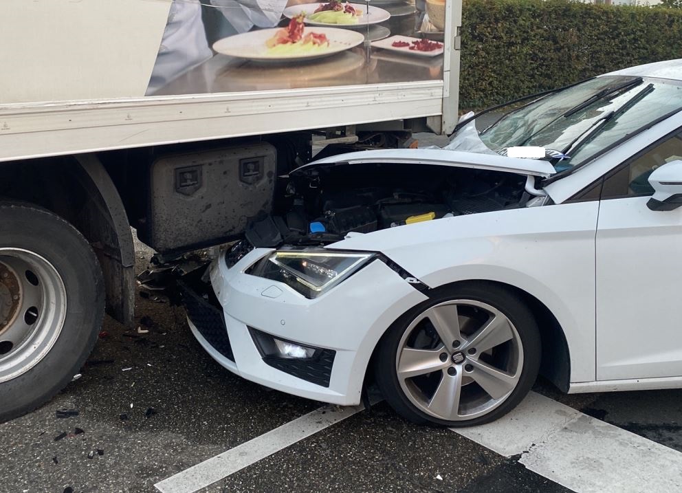 Am Donnerstag (27.10.2022), kurz nach 08.00 h, ereignete sich in der Hambacher Straße ein Verkehrsunfall zwischen einem Lkw und einem Pkw.