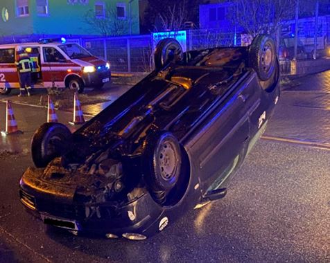 Am Freitag (30.12.2022), wurde der Polizei kurz nach 17.00 h ein Verkehrsunfall in der Adolf-Kolping-Straße in der Nähe des Tierheimes gemeldet, bei dem sich ein Pkw überschlagen hätte.