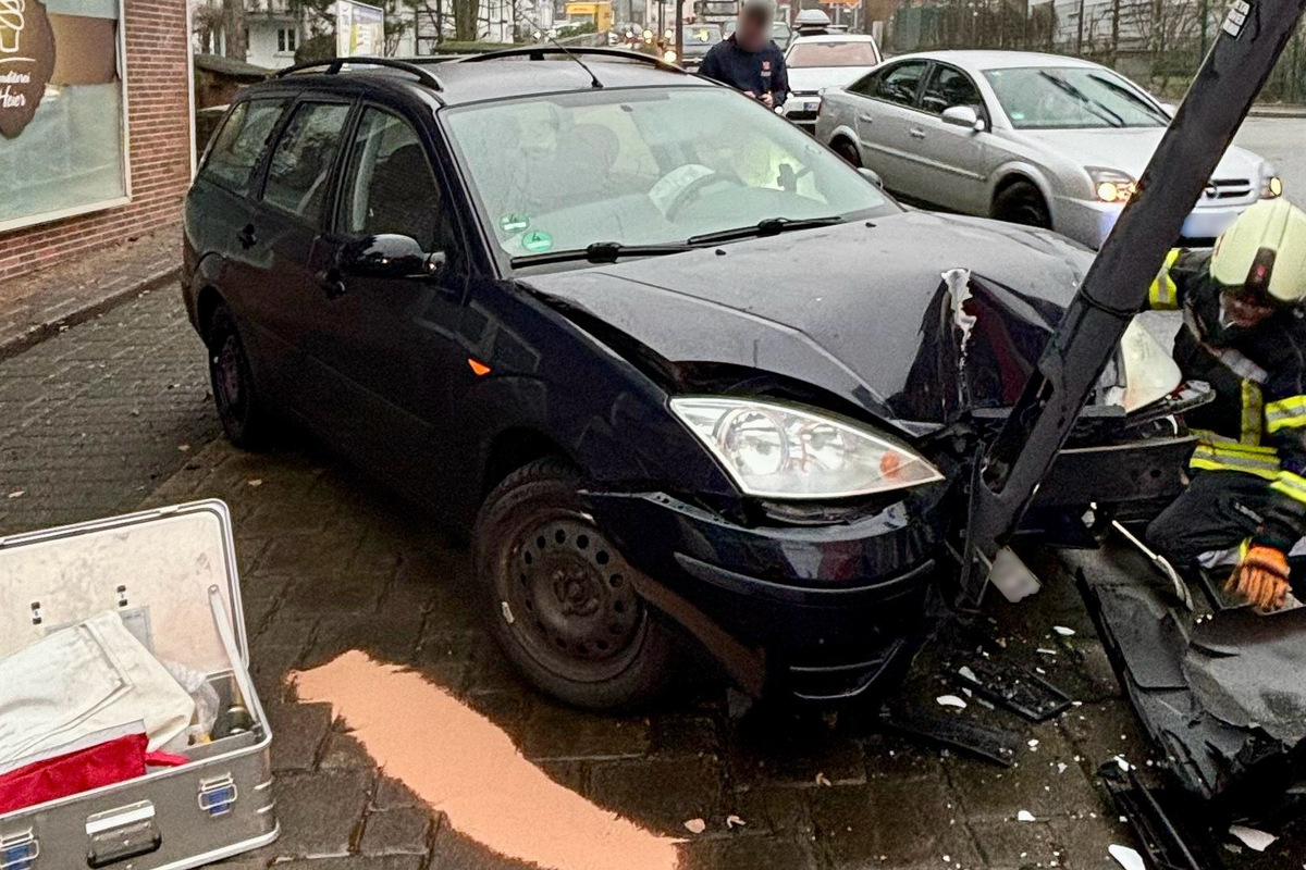 Im Bereich des Kreisverkehrs kam ein Pkw von der Fahrbahn ab und prallte vor eine Laterne. Der Fahrer wurde durch den Rettungsdienst versorgt. Die Feuerwehr sicherte die Unfallstelle und klemmte die Fahrzeugbatterie ab.