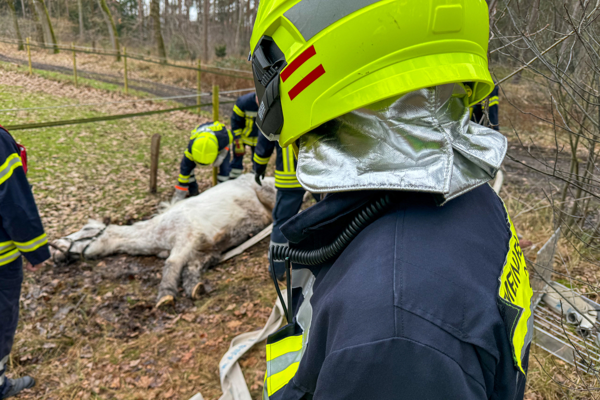Nienhof NI - Feuerwehr befreit Pferd aus misslicher Lage