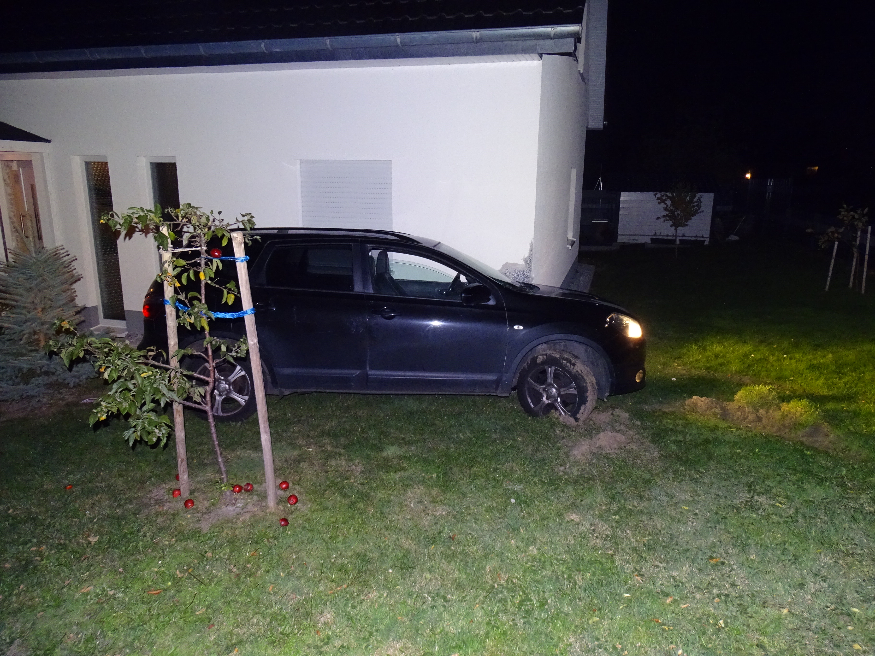An Pkw und Gebäude entstand Sachschaden, verletzt wurde dabei niemand. Eine Beeinflussung durch alkoholische Getränke oder andere berauschende Mittel konnte vor Ort ausgeschlossen werden. Der Pkw musste mittels Kran aus dem Vorgarten gehoben werden.