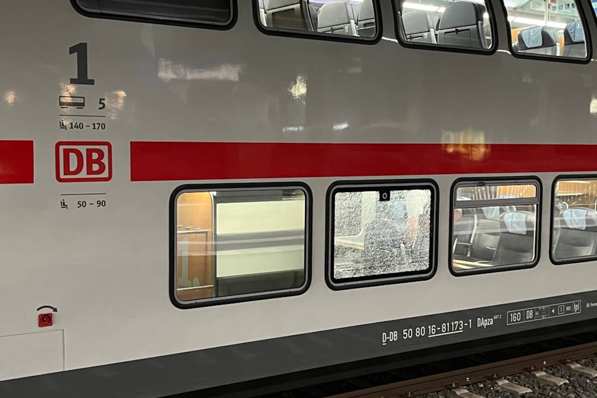 Unbekannte bewerfen Intercity und beschädigen Seitenscheibe bei Nordbögge Bönen (Bildquelle: Bundespolizeidirektion Sankt Augustin)