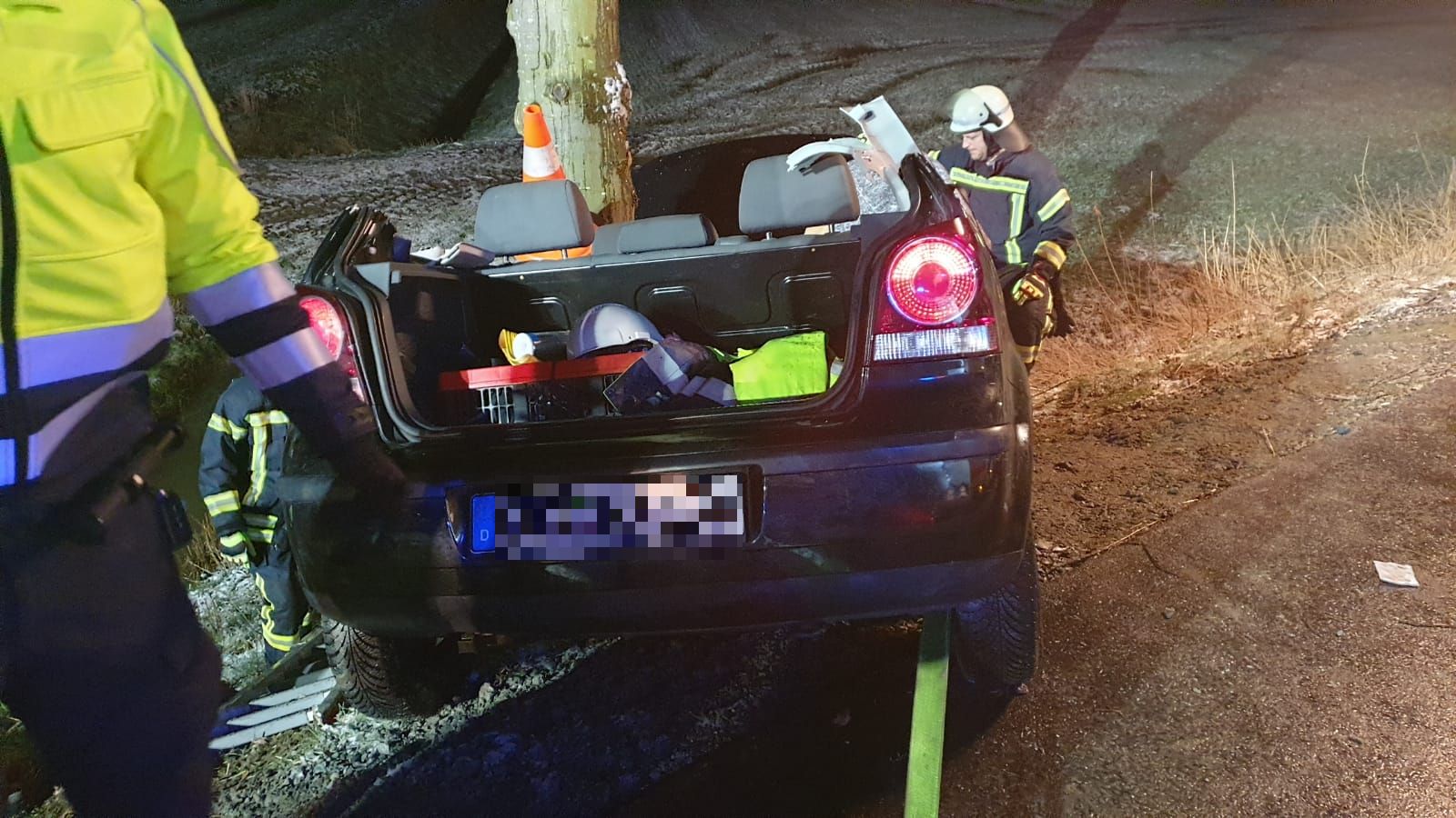 Sie befreiten die 22-Jährige mit schwerem Rettungsgerät aus dem Wrack und mussten dafür das Dach des Fahrzeuges abtrennen.