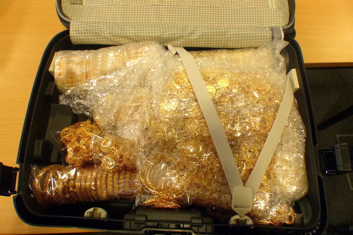 Er wurde jedoch einer Kontrolle durch die Zöllner unterzogen, die feststellten, dass sich in den beiden Handgepäckstücken des Mannes ausschließlich Goldschmuck befand.