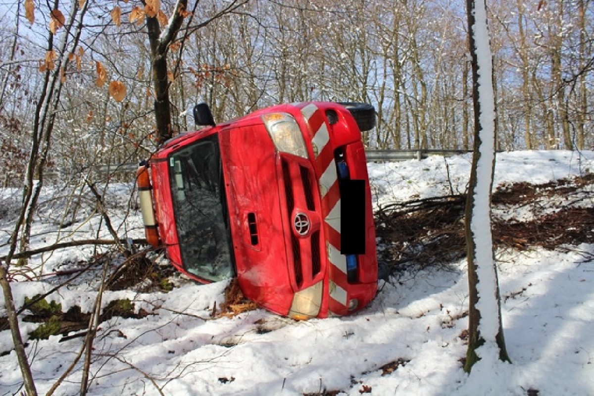 Der 39-Jährige Fahrzeugführer eines roten Toyota Hilux fuhr auf dieser Strecke in Richtung Mayweilerhof, als ihm mittig auf schneebedeckter Fahrbahn ein dunkler Kombi entgegenkam.
