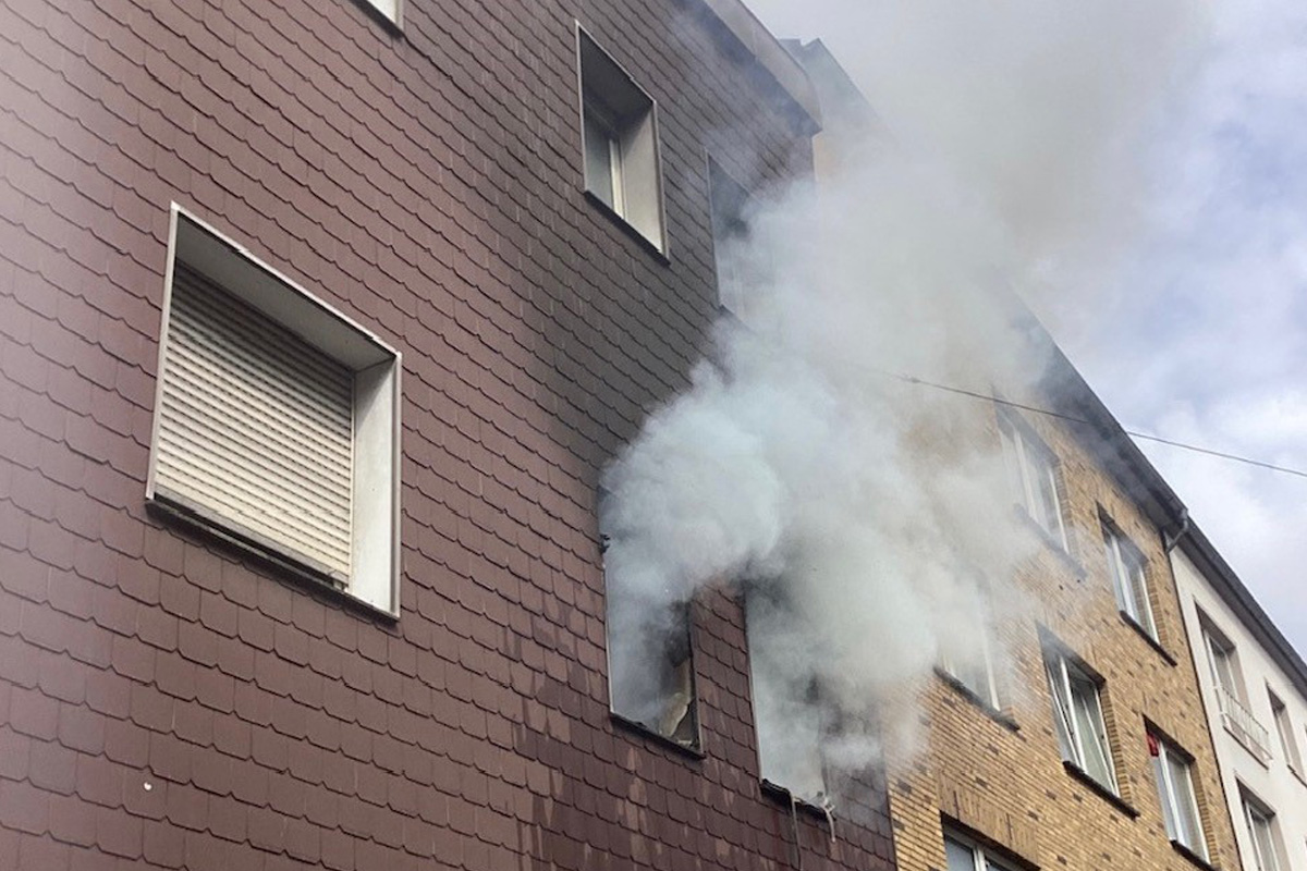 Ein Brand in einer Wohnung auf der Friedrich-Karl-Straße in Oberhausen hat am Freitagmittag, 1. August 2025, auch Teile der Hausfassade beschädigt. Mehrere Bewohner erlitten Rauchvergiftungen und wurden ins Krankenhaus gebracht.
