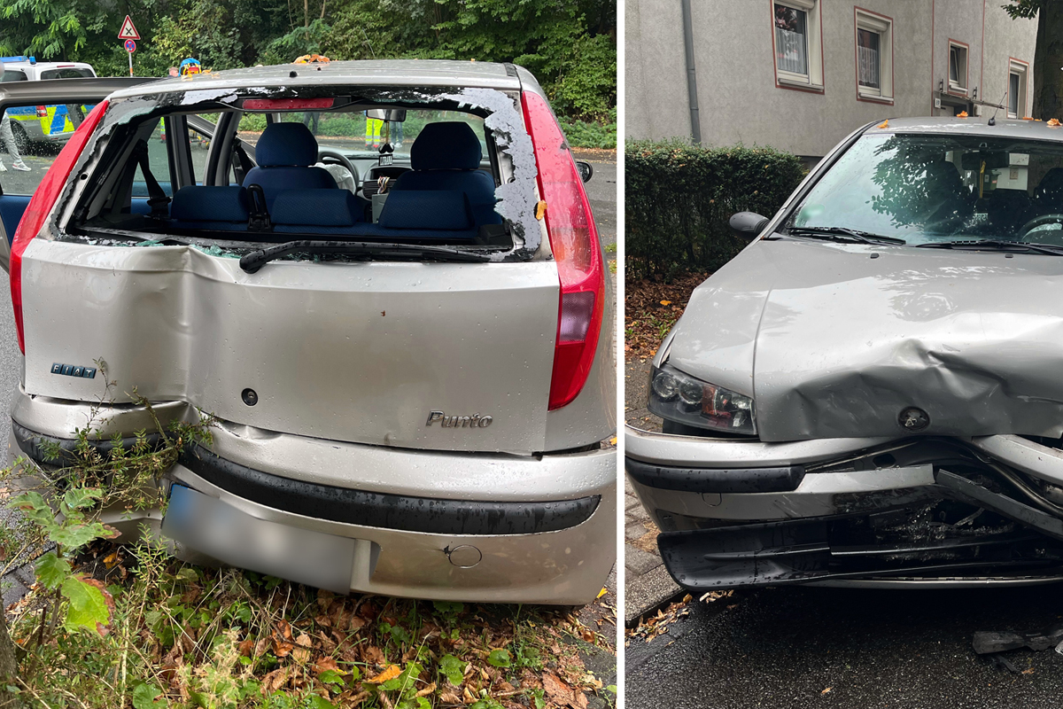 Am Montagmittag (08.09.2025) kam es in Oberhausen-Lirich zu einem Frontalzusammenstoß zwischen zwei Autos. Eine 46-jährige Fiat-Fahrerin setzte nach dem Unfall erschrocken zurück und prallte gegen einen Baum. Beide Beteiligten wurden verletzt.