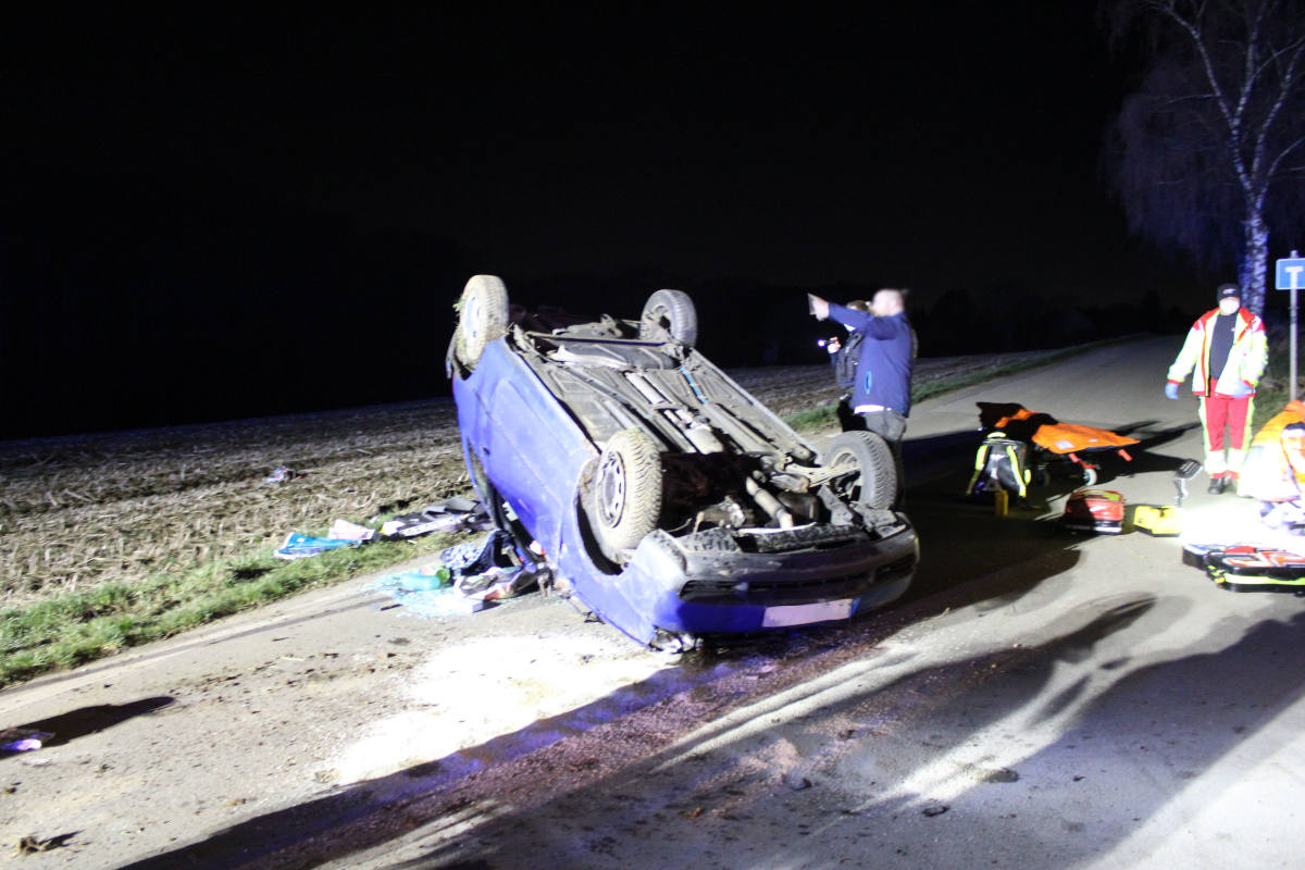 Am Montag (28.02.) kam ein 61-jähriger VW-Fahrer aus Kürten gegen 19:15 Uhr auf der Neschener Straße von der Fahrbahn ab und überschlug sich mehrfach.