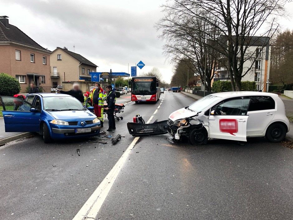 Eine 22-jährige Frau aus Lindlar war mit ihrem Pkw der Marke Seat von einem Parkplatz nach links auf die Altenberger-Dom-Straße in Richtung Bergisch Gladbach eingefahren. Ein 72-jähriger Kölner befuhr in diesem Moment mit seinem Renault die Altenberger-Dom-Straße in entgegengesetzter Richtung. Nach ihrem Abbiegevorgang geriet die Lindlarerin aus bislang ungeklärter Ursache in den Gegenverkehr und stieß mit dem Pkw des Kölners zusammen. Durch den Aufprall wurde sie schwer verletzt und musste durch einen Rettungswagen in ein Krankenhaus transportiert werden. Der Kölner wurde leicht verletzt, auch er wurde in ein Krankenhaus gebracht.