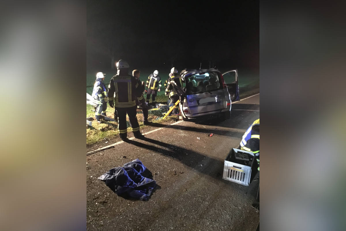 Ein mit einem Ehepaar besetzter Toyota Van touchierte einen entgegenkommenden Traktor mit angehängter Sämaschine. Dabei wurde der Toyota auf der kompletten Fahrerseite aufgerissen. Die Löschzüge Keitlinghausen-Sünninghausen und Oelde wurden mit dem Stichwort Verkehrsunfall - PKW gegen Landmaschine, zwei Personen eingeklemmt, von der Kreisleitstelle Warendorf alarmiert. Außerdem wurden zwei Rettungswagen, zwei Notärzte und ein Rettungshubschrauber an die Unfallstelle entsandt. Vor Ort musste der verunfallte Toyota als erstes gegen ein Wegrutschen in einen Graben gesichert werden, bevor mit der Rettung der beiden Insassen begonnen werden konnte. Diese wurde mit schweren technische Gerät durchgeführt.