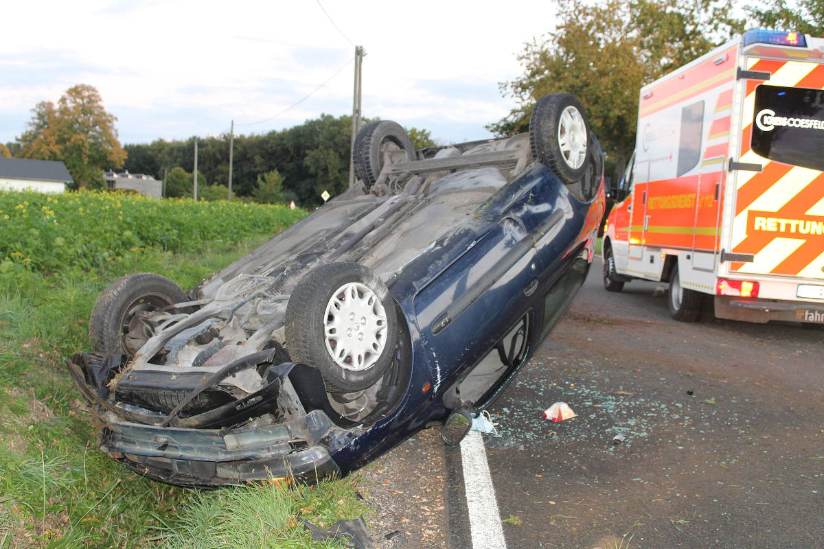 Gegen 18.40 Uhr war die 21-jährige Fahrerin in Richtung Vinnum unterwegs. Aus noch nicht geklärter Ursache verlor die 21-Jährige nach einer scharfen Rechtskurve die Kontrolle über das Auto, wodurch das Heck ausscherte. Das Fahrzeug überschlug sich daraufhin. Alle Insassen kamen mit Rettungswagen in Krankenhäuser. Die Straße war während der Unfallaufnahme gesperrt.