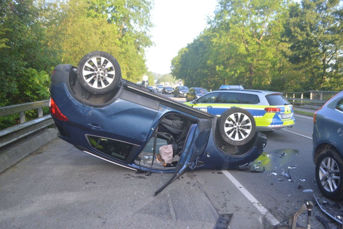 Der Opel landete auf dem Dach. (Bildquelle: Polizeiinspektion Stade)