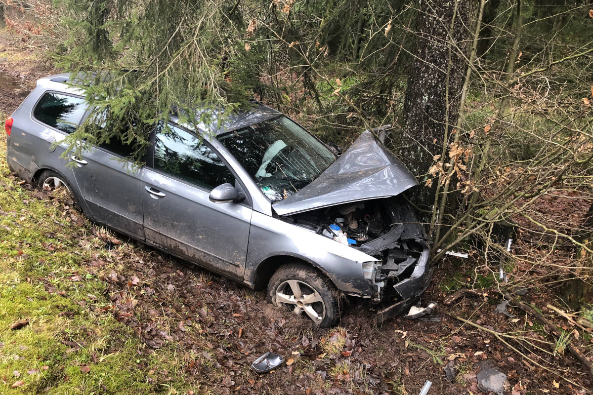 Von der Fahrbahn abgekommen und gegen Baum gekracht (Bildquelle: Polizeidirektion Wittlich)
