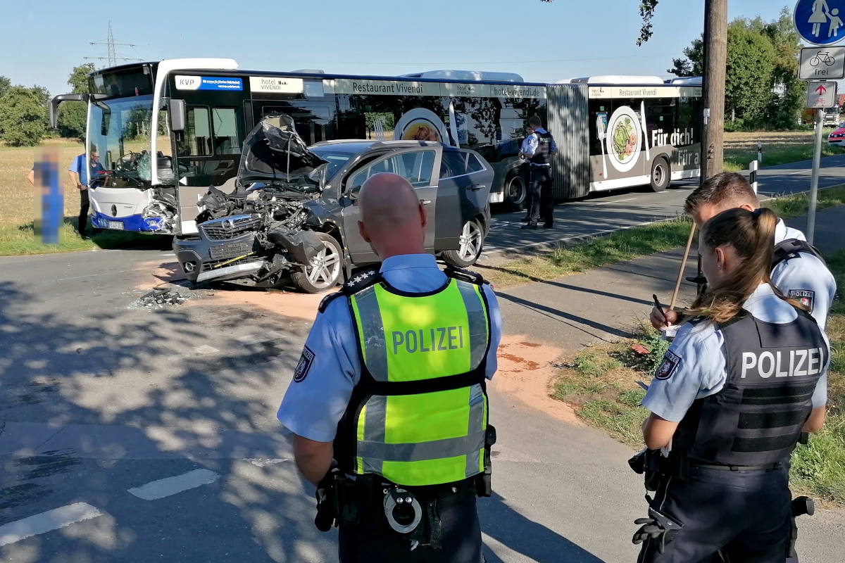 Die Opel-Fahrerin zog sich schwere Verletzungen zu. Im Bus erlitt der Busfahrer Verletzungen. Eine 34-jährige Frau und ihr Sohn (10) stürzten im Gang. Weitere Kinder fielen auf die beiden. Der Rettungsdienst brachte die Autofahrerin sowie den Busfahrer und die Mutter mit ihrem Sohn mit Rettungswagen in Krankenhäuser.