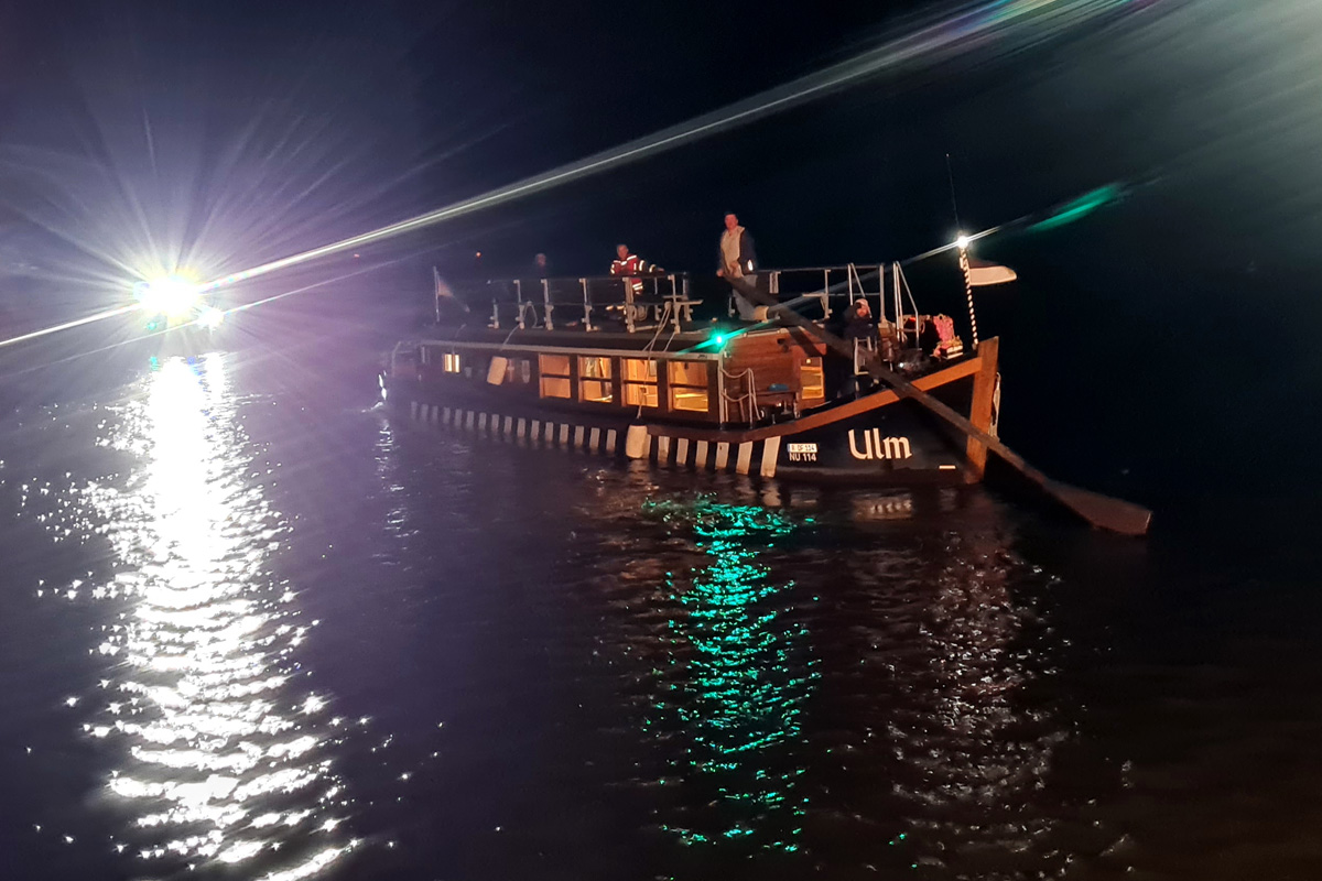 Am Sonntagabend, dem 21.09.2025, befanden sich eine Ausflugsgesellschaft, insgesamt 29 Passagiere und 5 Besatzungsmitglieder, auf einem nachgebauten, nostalgischen