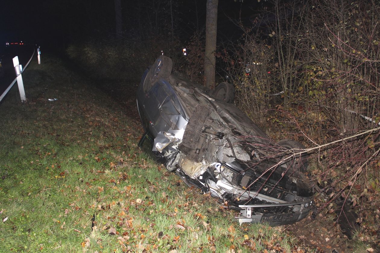 Auto überschlägt sich und kommt im Graben zum Liegen (Bildquelle: Polizei Minden-Lübbecke)