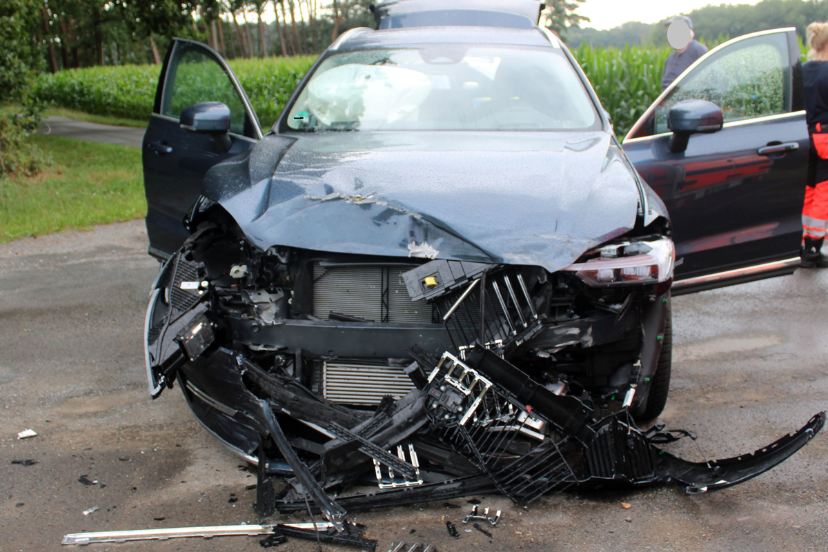 Am Mittwoch, 23.Juli 2025, wurden bei einem Kreuzungsunfall in Petershagen-Heimsen drei Menschen verletzt. Ein Lieferwagen kollidierte mit einem Volvo und kippte nach dem Zusammenstoß zur Seite.