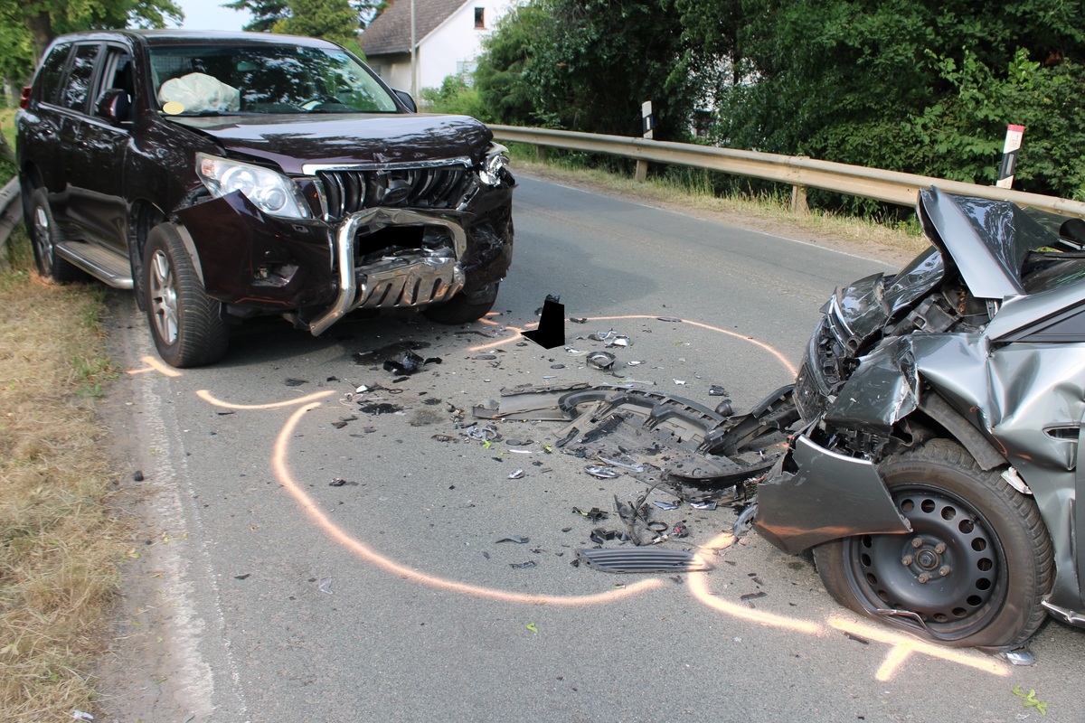 Bei einer Frontalkollision in Wietersheim haben sich am späten Donnerstagnachmittag, 15.06.2023, drei Personen verletzt. Eine Frau wurde schwer verletzt.