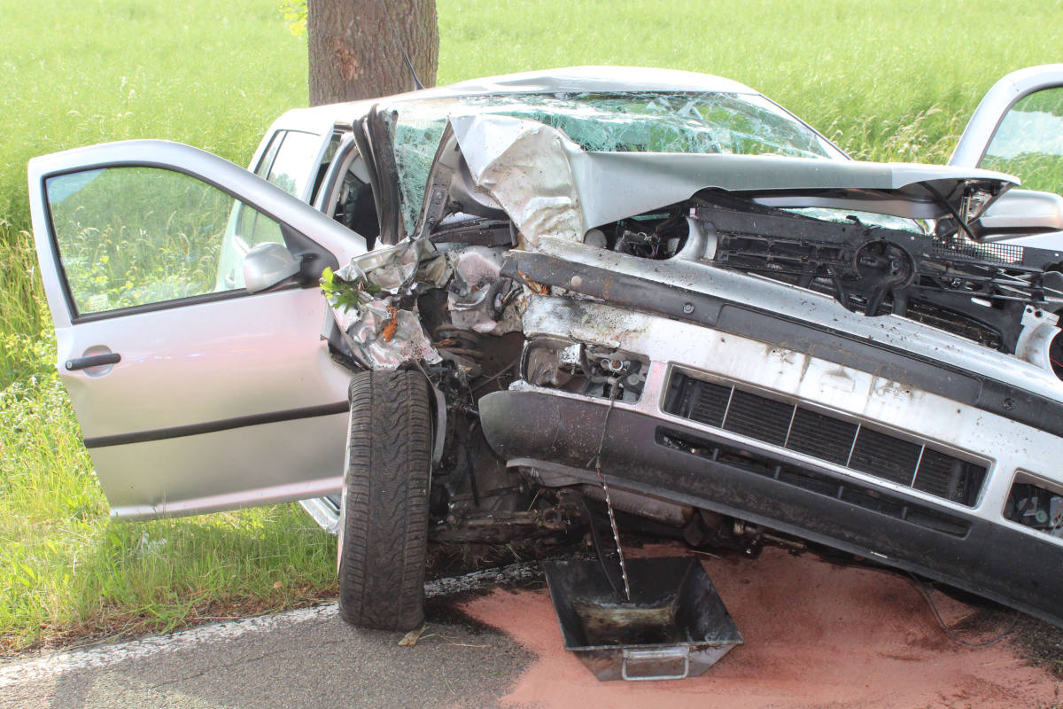 Reh ausgewichen und mit Baum kollidiert bei Petershagen (Bildquelle: Polizei Minden-Lübbecke)