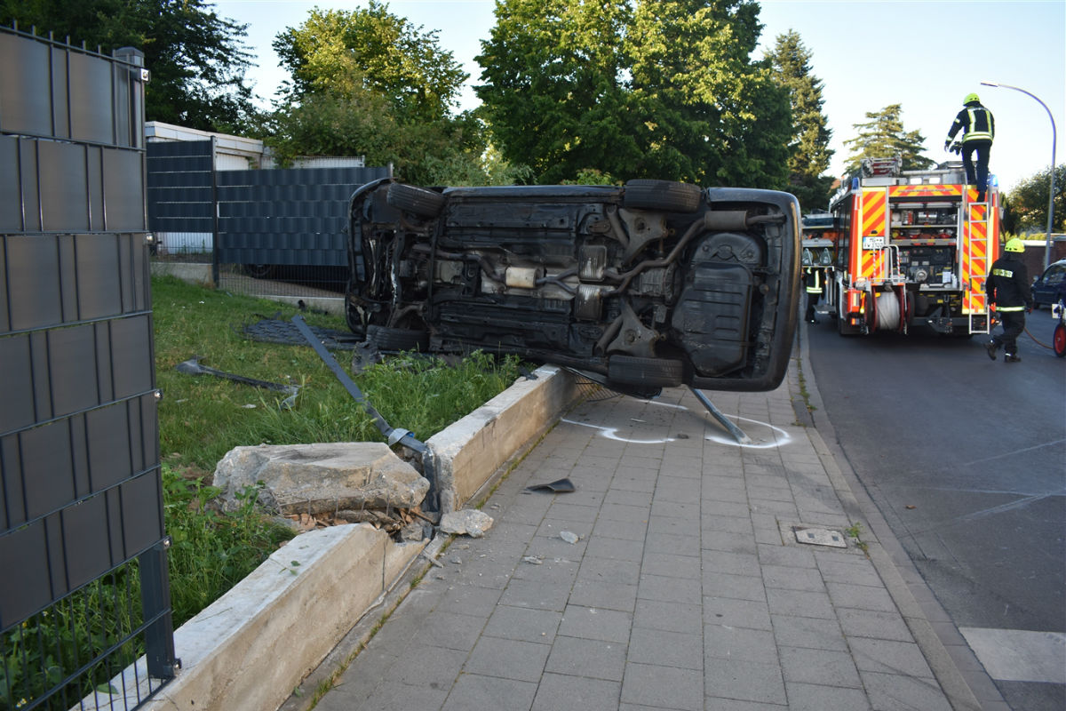 Am Freitag stießen gegen 20.15 h an der Krezung Schlossstr./Dohler Str. zwei PKW derart heftig zusammen, dass einer auf die Seite kippte und gegen einen Grundstückzaun prallte.