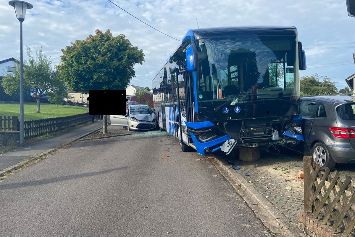 In Preist hat sich am Donnerstagabend, 7. August 2025, ein Bus selbstständig gemacht und ist die Straße hinabgerollt. Dabei wurden zwei Pkw und mehrere Grundstücksmauern beschädigt. Verletzt wurde niemand.