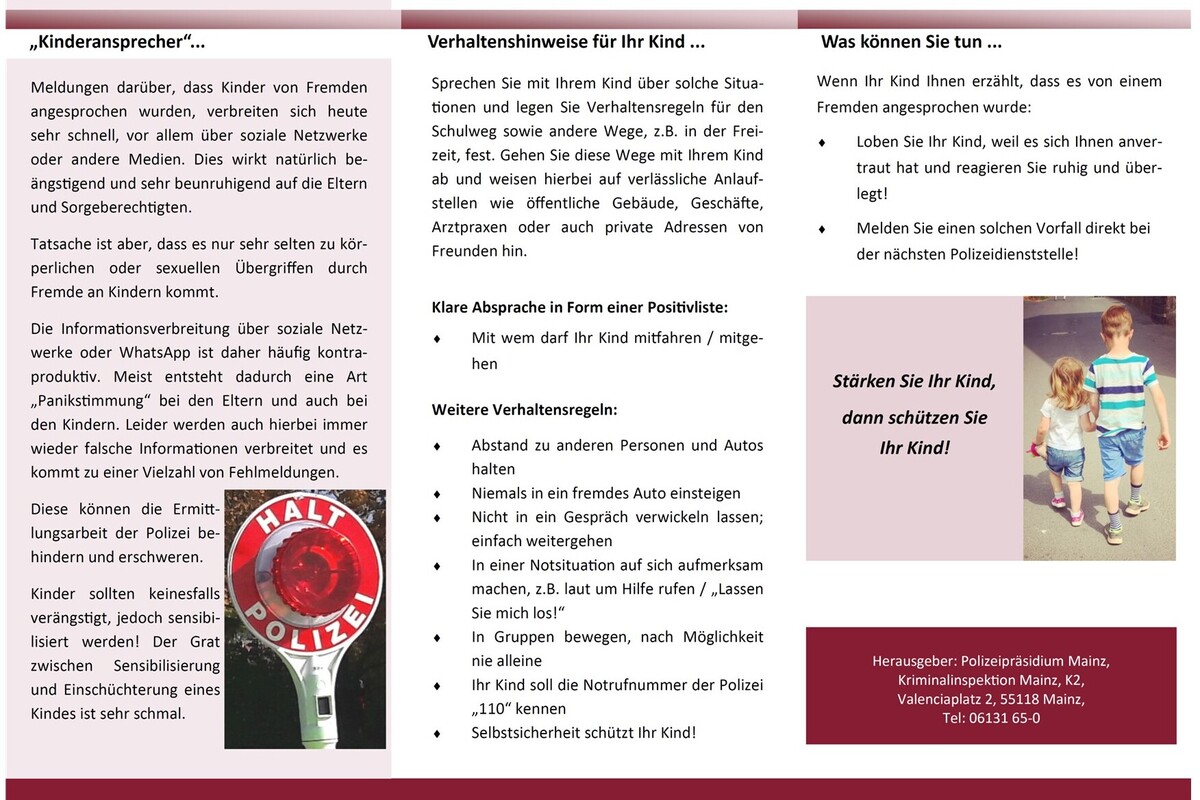 Flyer zum Thema Ansprechen von Kindern (Bildquelle: Polizeiinspektion Kirchheimbolanden)