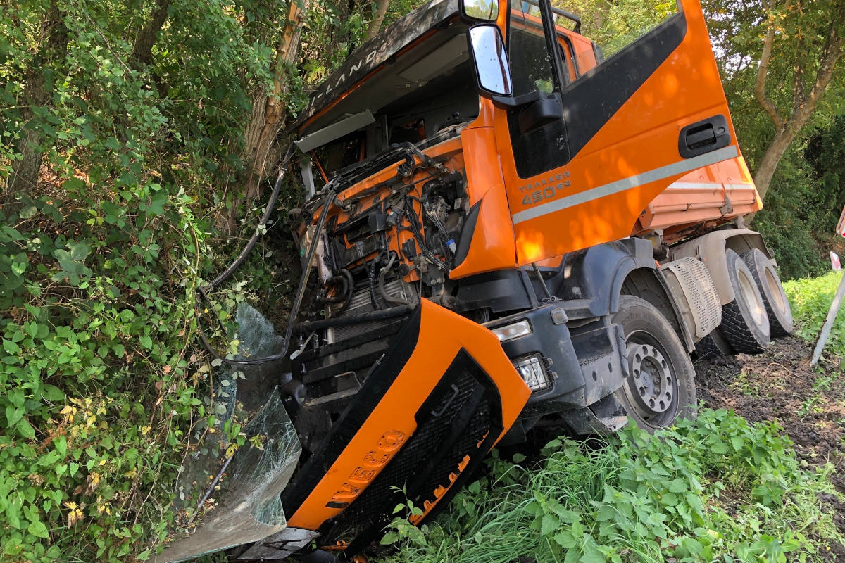 LKW kommt von Straße ab und kollidiert mit mehreren Bäumen (Bildquelle: Polizeidirektion Kaiserslautern)