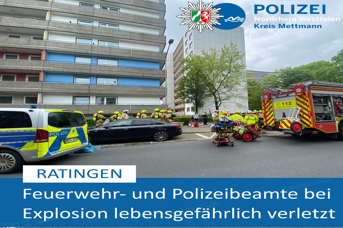 Während eines Polizeieinsatzes in Ratingen kam es am Donnerstagvormittag (11. Mai 2023) aus bislang nicht geklärter Ursache zu einer Explosion und in weiterer Folge zu einem Brand in einer Wohnung.