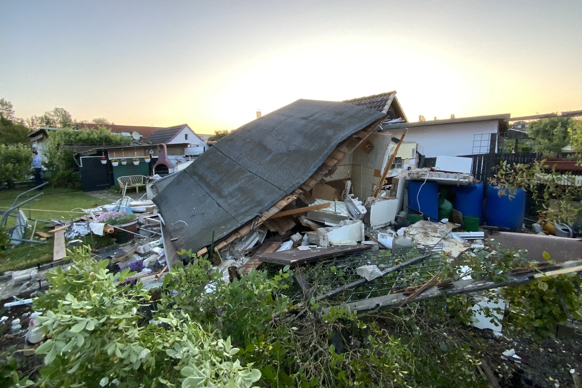 Heute, 04.06.2023, kam es zu einer Explosion in einer Kleingartenanlage. In einem Gartenhaus hatte sich eine Verpuffung ereignet. Eine Person wurde dabei erheblich verletzt.