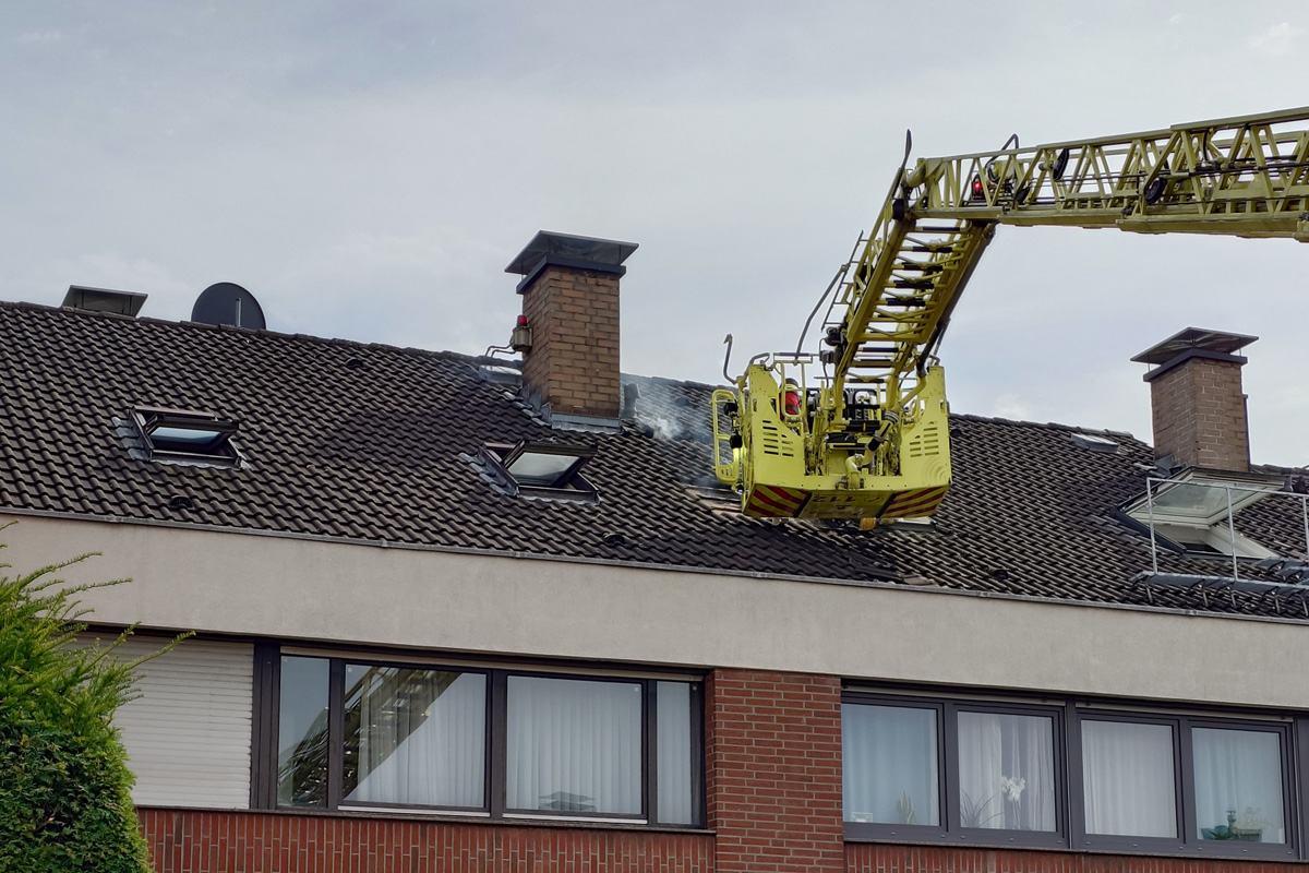 Am Donnerstagabend (7.8.2025) kam es in der Grachtensiedlung in Ratingen zu einem Schwelbrand im Dachbereich zweier Reihenhäuser. Die Feuerwehr konnte den Brand schnell löschen. Verletzt wurde niemand.