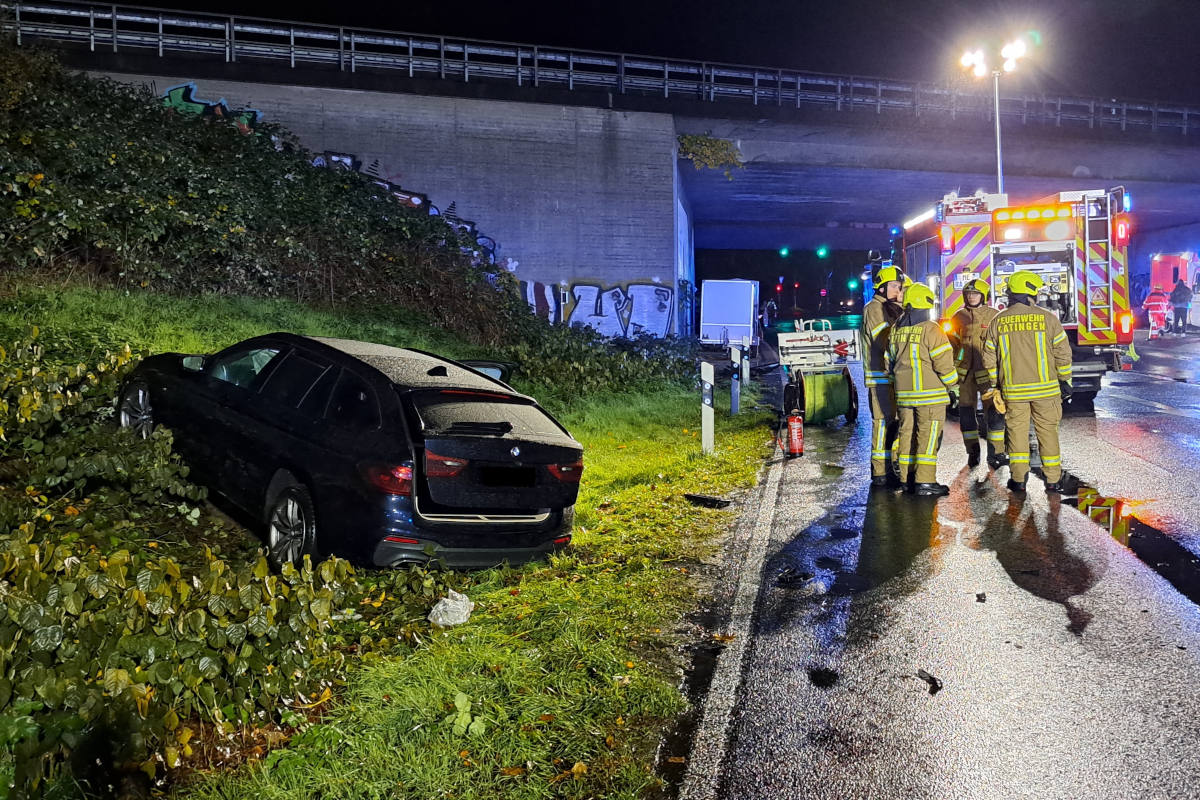 BMW landet bei Kollision in Böschung (Bildquelle: Feuerwehr Ratingen)