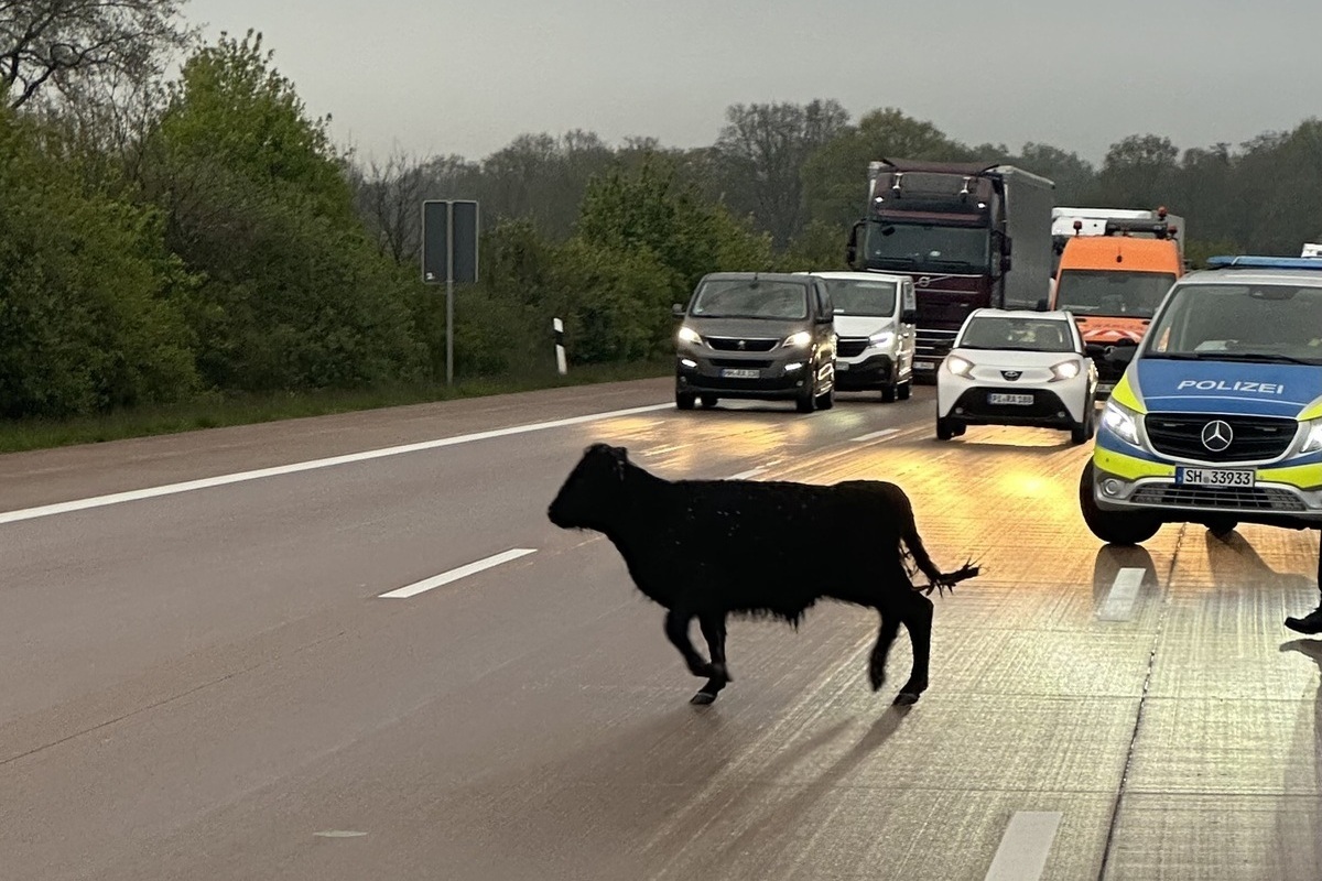 Am Morgen des 25.04.24 wurde der Polizei gemeldet, dass ein junges Rind auf der BAB1 stehen soll.