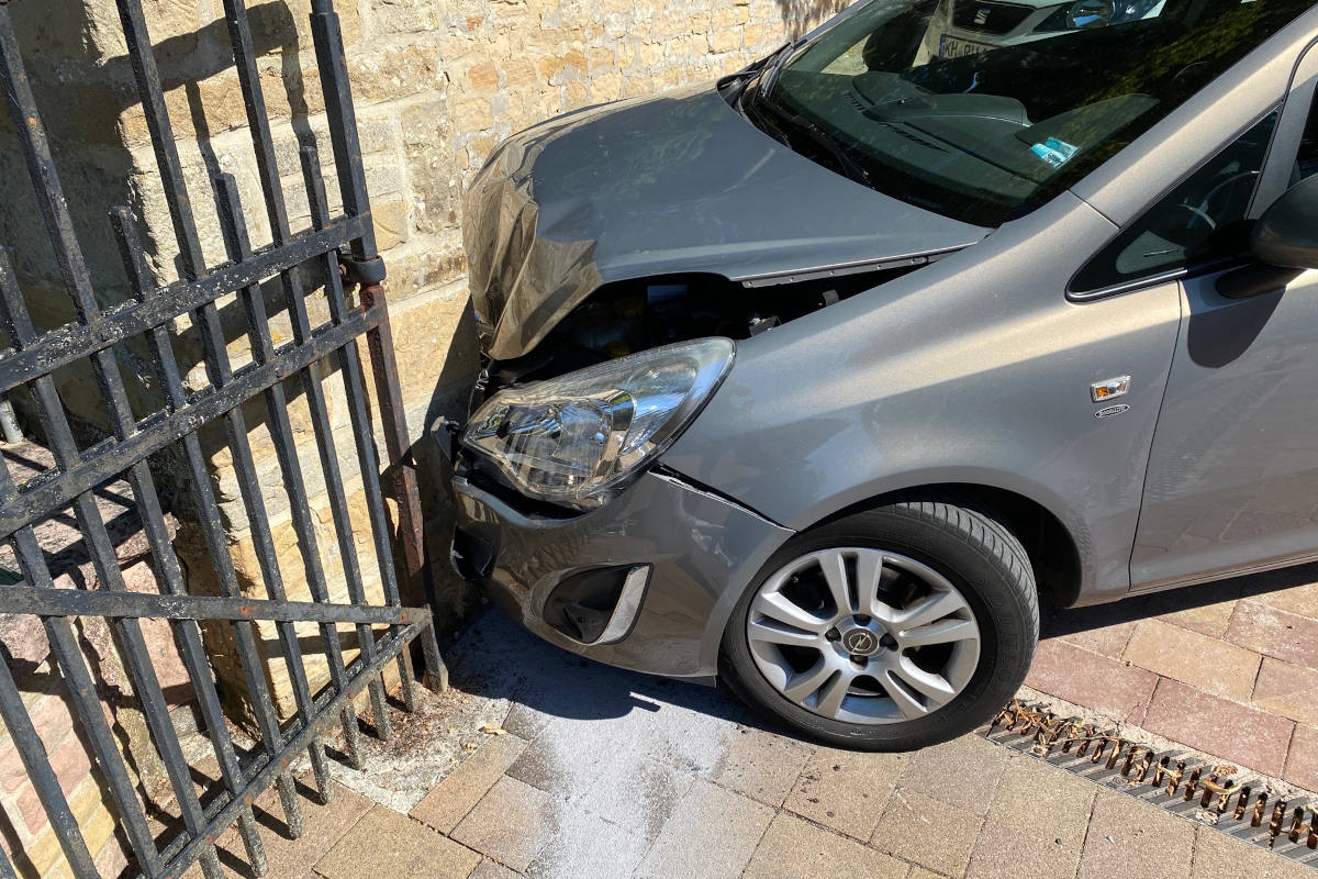 Seniorin fährt gegen Friedhofsmauer. Am Sonntagnachmittag versuchte die Frau auf dem Parkplatz am Friedhof zu wenden.